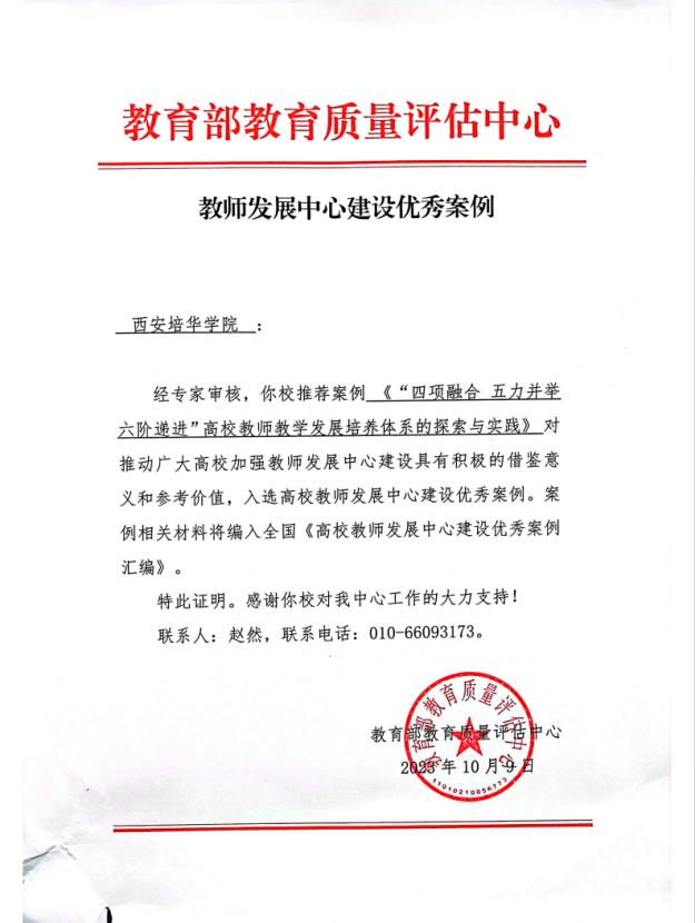 近日,学校教师教学发展中心的《“四项融合 五力并举 六阶递进”高校教师教学发展培养体系的探索与实践》案例,被教育部教育质量评估中心评为2023年优秀案例,并入选《高校教师发展中心建设优秀案例汇编》。