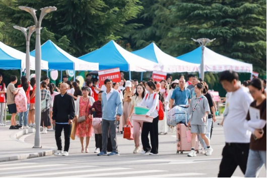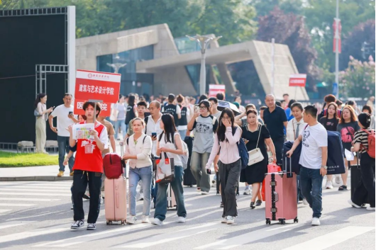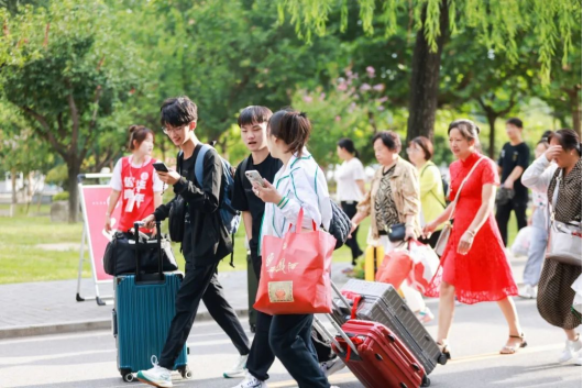 亲人们肩挑手扛,走进孩子们心仪的大学。不舍的话语藏在眼中,是担心,更是欣慰。
