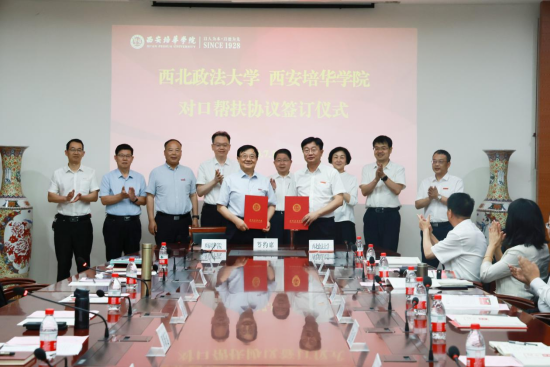 随后,在双方参会人员的共同见证下,我校校长李映方与西北政法大学校长范九利签订《西北政法大学西安培华学院对口帮扶协议书》。