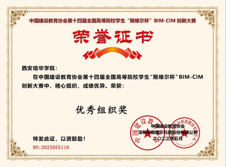 近日,学校建筑与艺术设计学院组织学生参加了第十四届全国高等院校学生“斯维尔杯”BIM-CIM创新大赛。参赛师生经过两个多月的精心准备和训练,取得了优异成绩,共获得个人赛二等奖4项,个人赛三等奖14项,团队赛二等奖2项,西安培华学院荣获优秀组织奖。