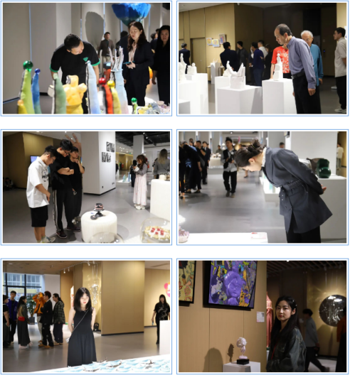 开幕式后,姜波理事长及建艺师生陪同各位观展嘉宾参观展览。作品的作者及指导教师分享了作品创作灵感及创作方式,获得了观展嘉宾的一致认可。