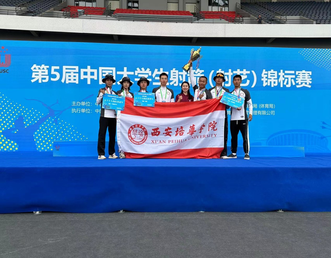 5月26—28日,由中国大学生体育协会主办,中国大学生体育协会射箭(射艺)分会执行,梅河口市文化广播电视和旅游局承办,第五届中国大学生射箭(射艺)锦标赛在梅河口市体育中心举行,共有来自北京大学、上海交通大学、浙江大学等全国52所高校460余名运动员、领队、教练员参赛。比赛历时三天,设传统弓个人团体、反曲弓个人团体等12个竞赛项目。西安培华学院代表队共派出6名运动员参加丙组反曲弓30米个人、混合团体和团体赛的比赛,并最终取得三银二铜的好成绩。代表队由体育学院院长王志强担任领队,孙茉晗、柴智恒两位老师担任教练。