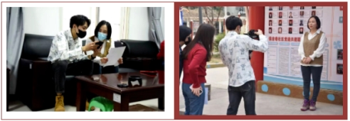 双方相辅相成、配合默契:青年志愿者协会主席团成员浩与保吉巷社区的负责人共同讨论拍摄流程、面对镜头的一些注意事项;学校志愿者们布置拍摄场地,选好灯线,架起相机为此次拍摄做足准备。