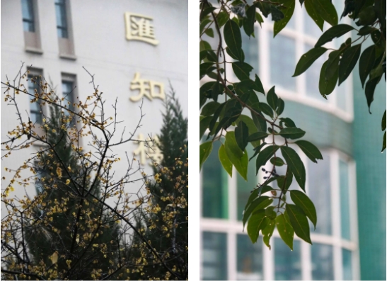 “天街小雨润如酥,草色遥看近却无。”烟雨濛濛,草色朦胧,青青松柏、涟漪湖畔,一幅校园美景,这边春色正好。