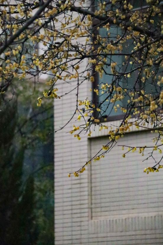 “春雨断桥人不度,小舟撑出柳阴来。”春雨,洗净尘埃,换得一片春色,开了一冬的腊梅被映衬的更加艳丽。