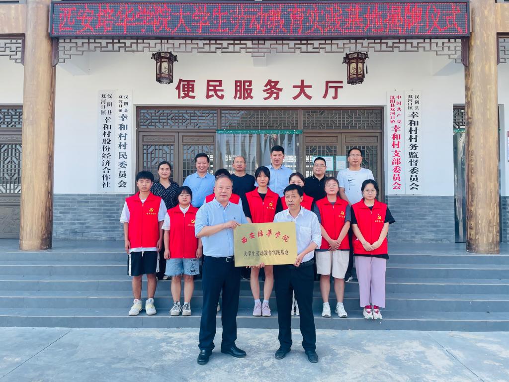 在交流结束后,双河口镇两委班子成员和校党委书记罗新远教授为我校“百年古镇行-传媒青年党员实践队”社会实践基地揭牌,并和实践队员们合影留念。