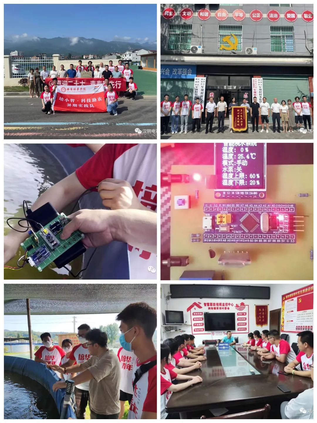 同学们结合自身专业优势,通过设计基于 STM 32 单片机的水质检测系统,为当地渔产养殖提供检测,将先进的科学文化知识传播到军坝村,为军坝村智慧养鱼产业做出贡献。本次活动还在涧池镇军坝村高密度水产养殖基地进行了西安培华学院大学生社会实践与劳动教育基地揭牌仪式,实现村校结合,共同发展的新局面,让军坝村成为西安培华学院的全方位实践试验基地,为军坝村乡村振兴事业提供科技力量。
