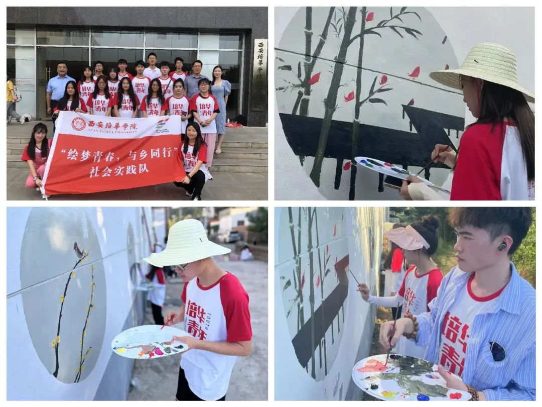 队员们深入学习二十四节气的内涵、资料,实地考察并确认绘画位置、高度、墙体状况,做好前期准备与绘画设计。翌日清晨,队员们便顶着太阳,怀抱满腔热情投入到了墙绘中,用画笔描绘乡村色彩,用青春助力乡村振兴。本次以此为主题,融合了中华传统文化,贴合着西樊村老乡们的生活日常。