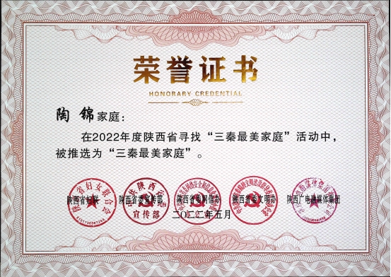 我校陶锦老师家庭获2022年度“三秦最美家庭”称号
