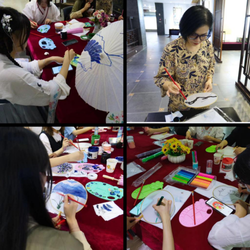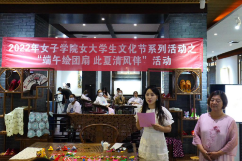 【女子学院】5月31日下午,女子学院在汇知楼一楼艺术馆开展了端午系列活动之“端午绘团扇,此夏清风伴”。此活动由西安培华学院女子学院院长助理李蒙老师主持,西安培华学院女子学院常务副院长王鹏、副院长班理、女子学院全体教师及学生代表参加,活动特邀嘉宾“西安市妇女手工艺者联盟”会长吕养芹女士出席。