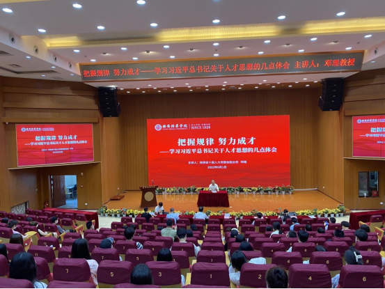姜波理事长在报告会前致欢迎词。他指出,邓理老师长期从事人才工作,对人才工作具有深刻的见解,丰富的实践,对学校人才建设工作具有重要的指导意义。希望同学们要把本次报告作为学习习近平总书记人才思想的一次导读,深刻理解习近平人才思想的深刻含义,把自己和国家的命运紧紧结合在一起,找准个人定位,树立“人人皆可成才、人人尽展其才”的理念,为实现中华民族的伟大复兴做出自己的贡献。
