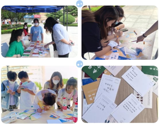 明信片漂流让同学们在明信片上写下自己内心的话语,亲手投递给邮递员,让这些信件像漂流瓶一样,给陌生人鼓励、给自己宽慰。