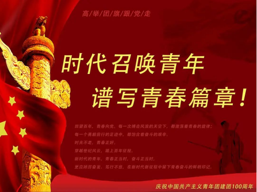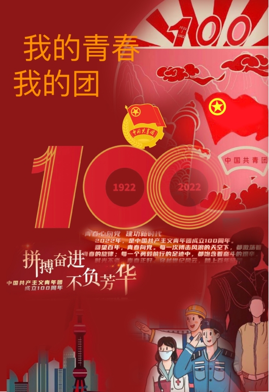 2022年,欣逢中国共产主义青年团成立100周年,在百年的奋斗历程中,中国共青团始终与党同心,与党同行,为庆祝中国共青团成立100周年,社团团工委主办,社团管理部积极动员各学生社团广泛参与“风雨飘零辟新路,百年艰辛载荣光”多种形式的主题团日活动。其中包括海报及手抄报征集,下面一起欣赏一下同学们的作品吧。