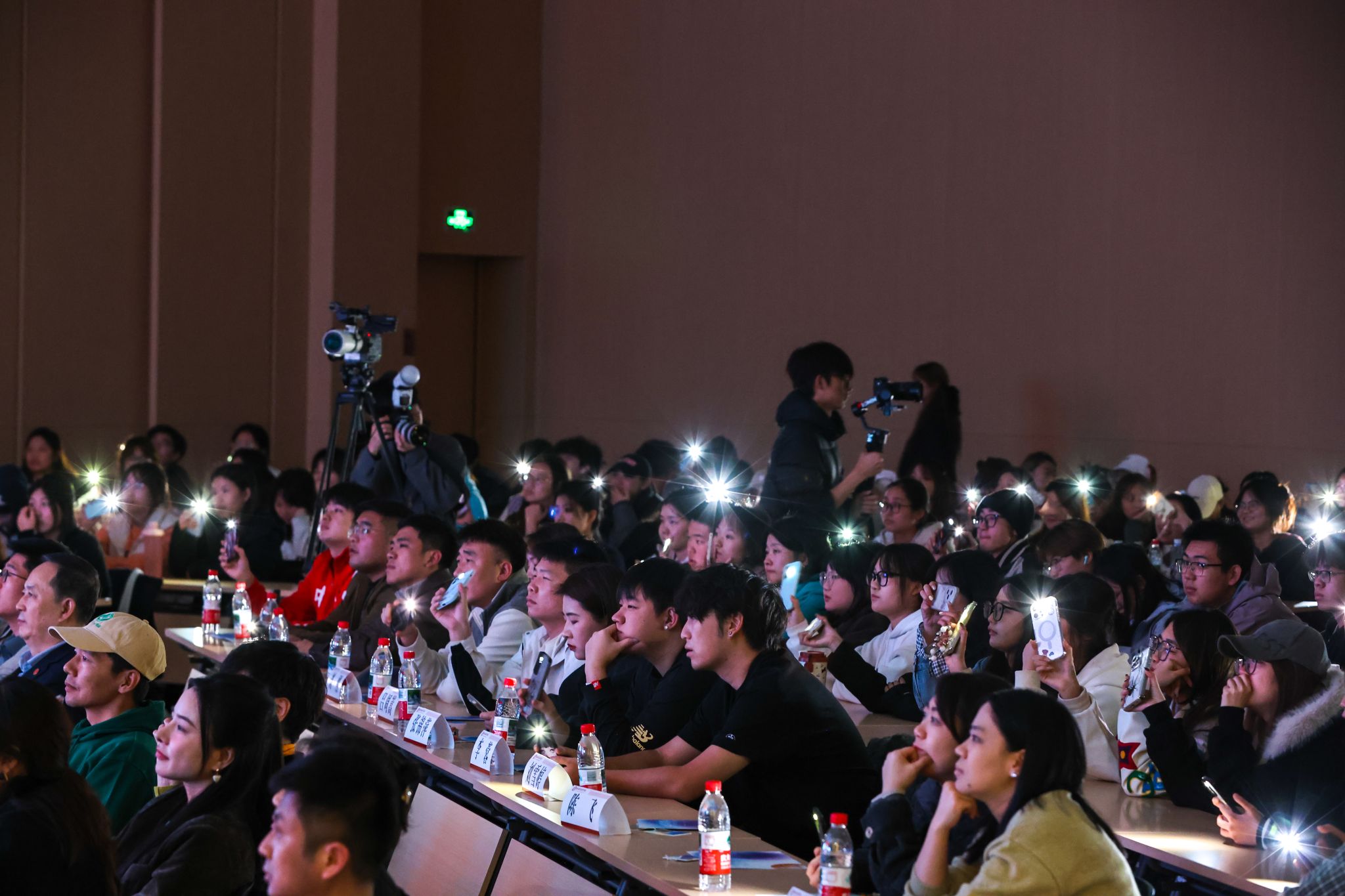 随后的 AI 现场共创 MV 环节,将活动氛围推向高潮。此前,师生们在祝福墙上写下对专业、对创作的寄语,广编专业师生即刻联动AI,将这些真挚祝福转化为一首专属 MV歌曲《写给未来的光》。当旋律响起,全场同学默契打开手机闪光灯,点点光亮如星海般摇曳,温暖氛围包裹整个会场。
