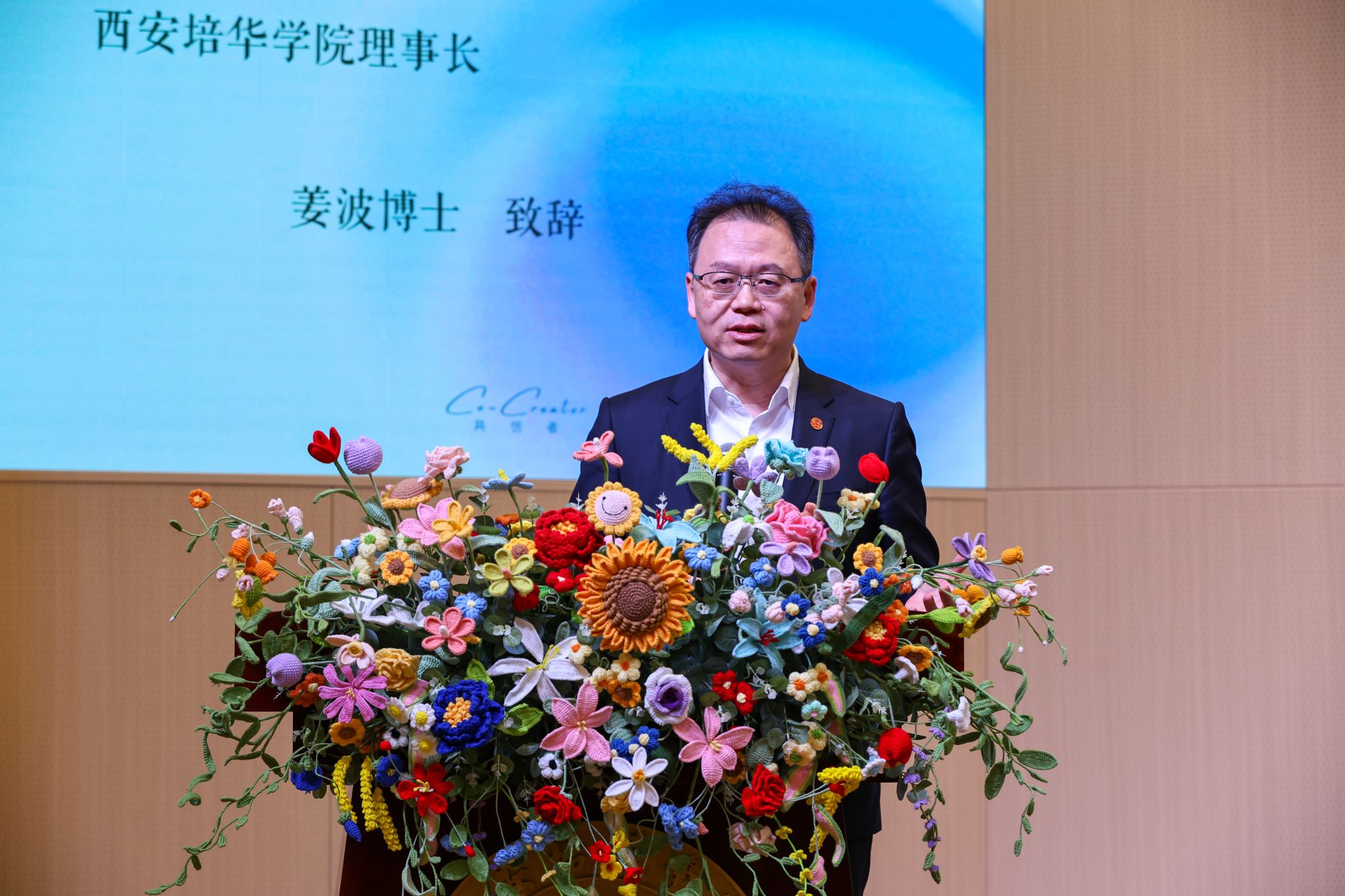 活动开篇,师生打造的专业实景演出与 AI 融合先导片《CO-CREATOR》震撼亮相。作为西部地区高校影视专业首部全流程 AI 融合短片,该片构建了人机协同创作矩阵,同时嘉宾桌上的 AR 小卡片可随时回放短片,让科技互动贯穿全程。西安培华学院理事长姜波博士在致辞中肯定了广编专业在 AI 时代的创新探索,鼓励学子以人文之心驾驭科技之力。