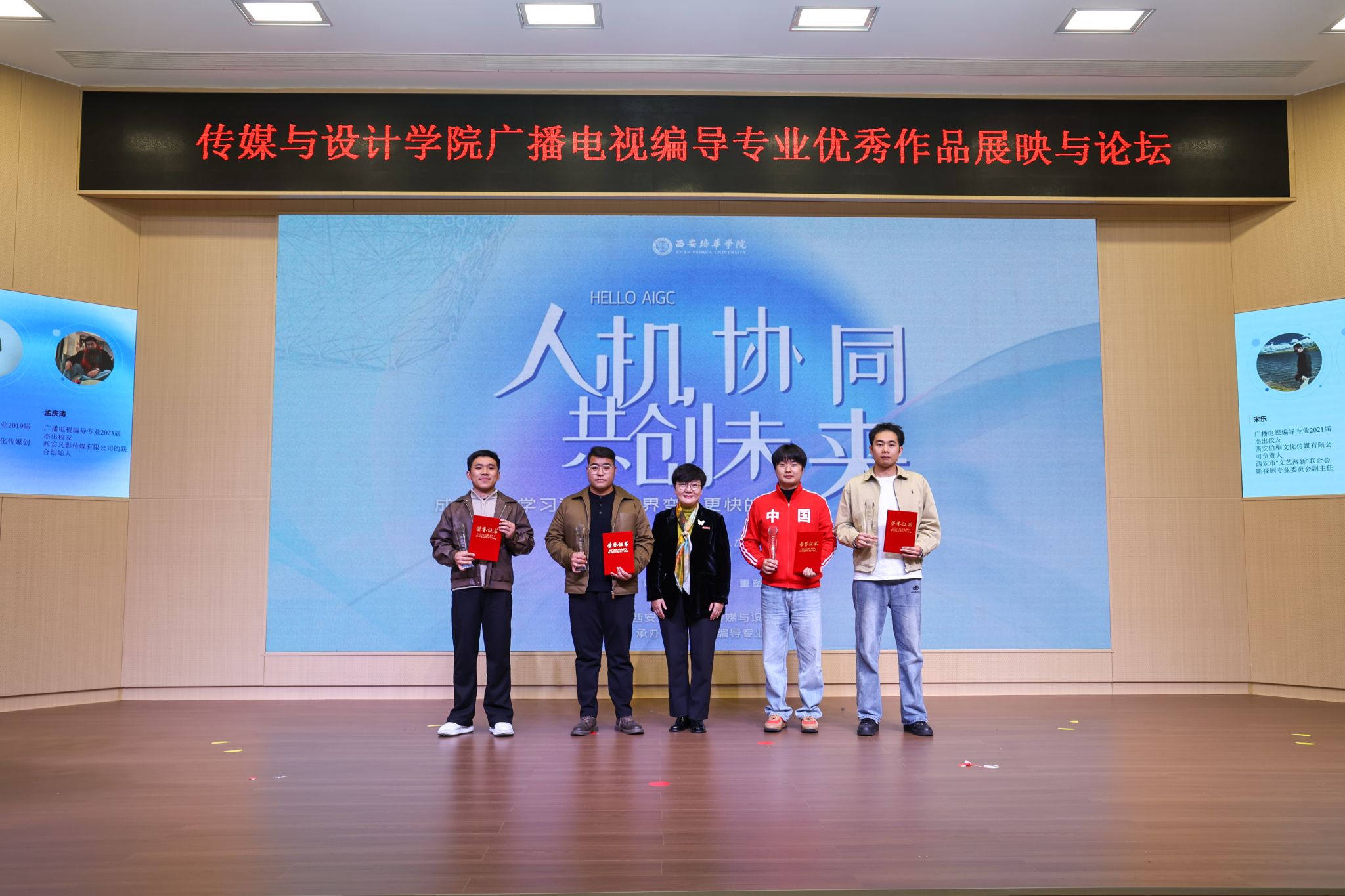 11月7日,西安培华学院传媒与设计学院广播电视编导专业“Co-Creator”主题学生作品展映与论坛活动在明德楼报告厅圆满落幕。本次活动以 “人机协同” 为核心,汇聚行业大咖、高校同仁与优秀校友,通过作品展映、嘉宾论坛、AI 互动等多元形式,搭建了一场技术与艺术碰撞、传承与创新共生的专业盛宴,为影视教育与创作实践探索新路径。