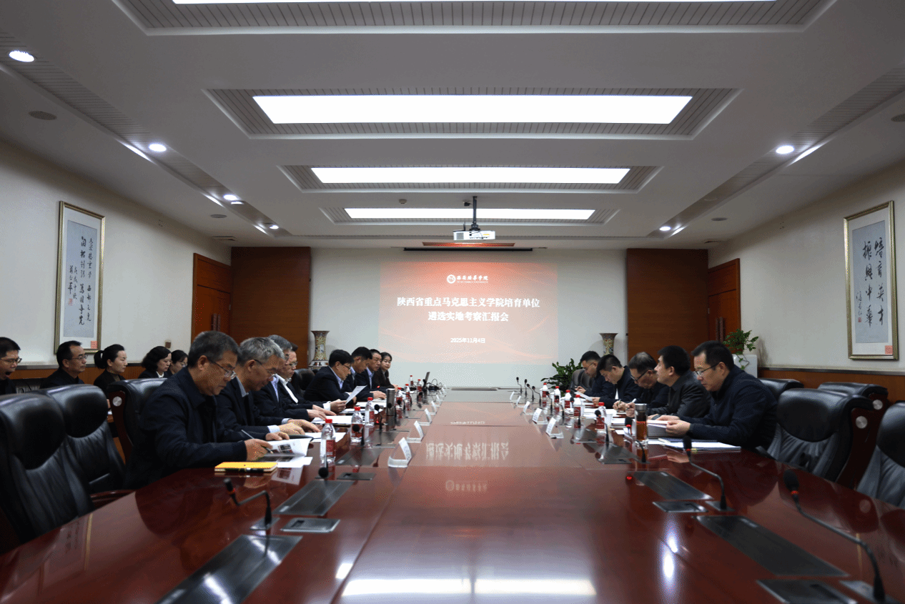 评审汇报会在明德楼第一会议室举行。专家组组长陕西师范大学马克思主义学院阎树群教授,成员省委教育工委宣传部部长李建伟、西安交通大学马克思主义学院院长燕连福、长安大学马克思主义学院院长陈怀平、省委宣传部理论处干部马继昌,西安培华学院理事长姜波、党委书记刘锋等人出席会议,会议由校长李映方主持。