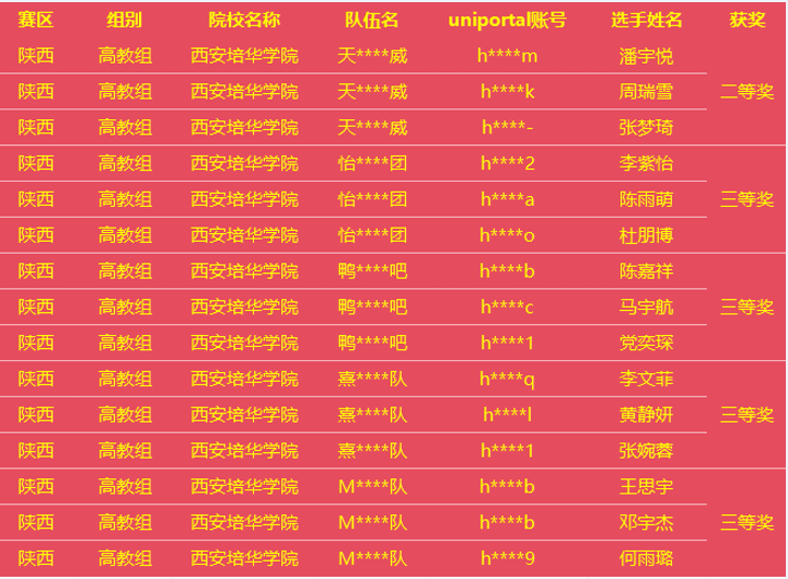 省级决赛获奖名单