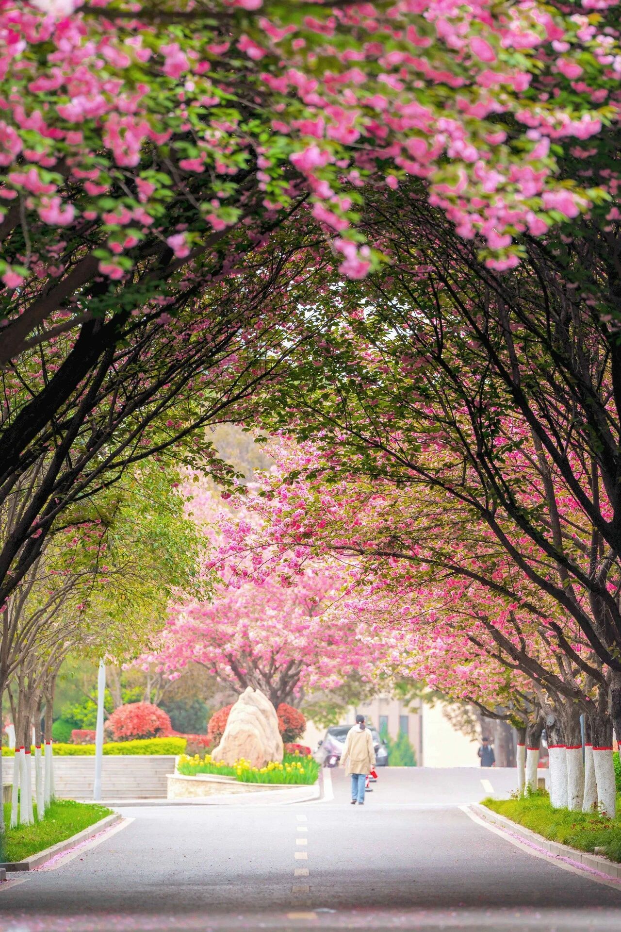 一树繁花,半日清闲。花瓣飘落,似蝴蝶振翅,曾映唐朝宫苑,今满培华校园。团团花瓣唱响青春的欢乐颂,簇簇粉红正是中华沃土上的最美春日诗。花映人面,人面如花,缀在花海,醉于春意。时光仿佛放慢了脚步,留人驻足观赏、打卡留念。