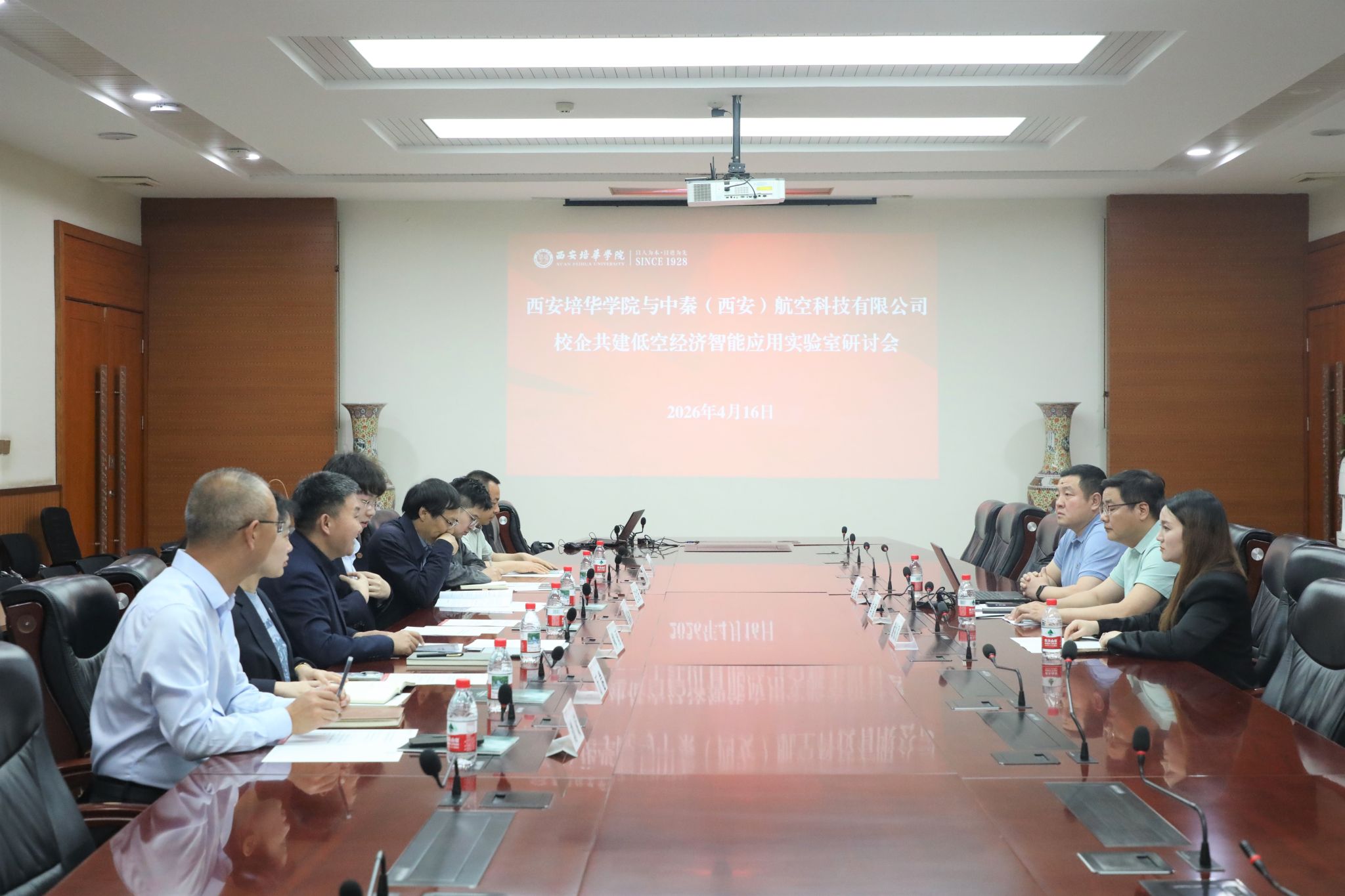 4月16日,西安培华学院与中秦(西安)航空科技有限公司校企共建实验室研讨会在长安校区明德楼第一会议室顺利召开。会议由西安培华学院科研与对外合作中心副主任柳雨主持,中秦(西安)航空科技有限公司总经理车雷、副总经理王宁、低空负责人谢礼飞,西安培华学院理事会秘书长、副校长姜瀛初,智能科学与工程学院院长王文庆、院长助理万卷,实验室建设与设备管理中心副主任刘斌,资产管理中心相关负责人等参会,校企双方相关负责人齐聚一堂,共商实验室建设等关键事宜,擘画产学研协同创新发展蓝图。