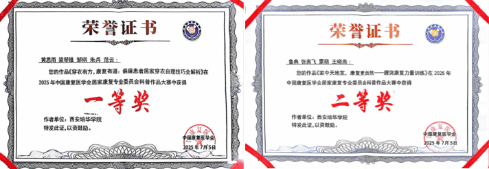 专业教师在2025中国康复医学会居家康复专业委员会科普作品大赛中获得奖项