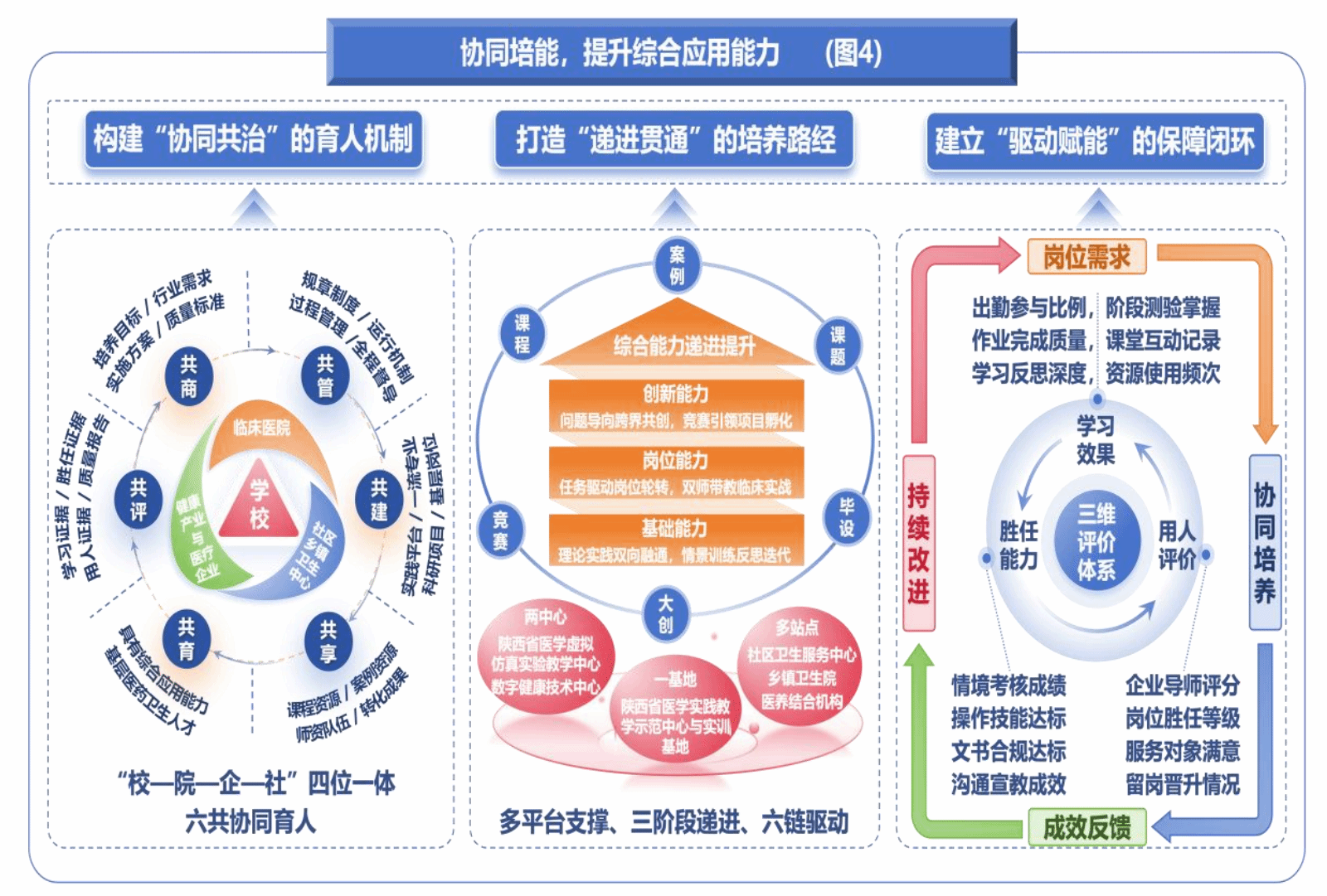 创新“校-院-企-社”四方联动的“六共”机制,依托“一基地两中心多站点”实践平台,联动100余名行业导师全程参与育人,建立数据驱动闭环评价,全面提升学生基层岗位胜任力与综合应用能力。
