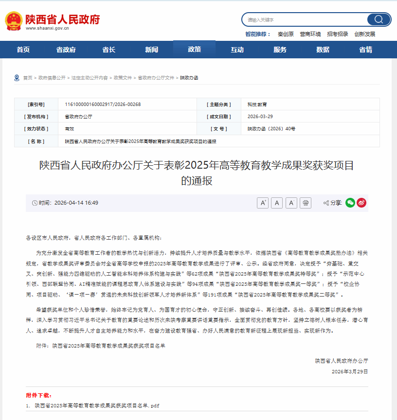 【荣耀培华】西安培华学院斩获陕西省高等教育教学成果奖