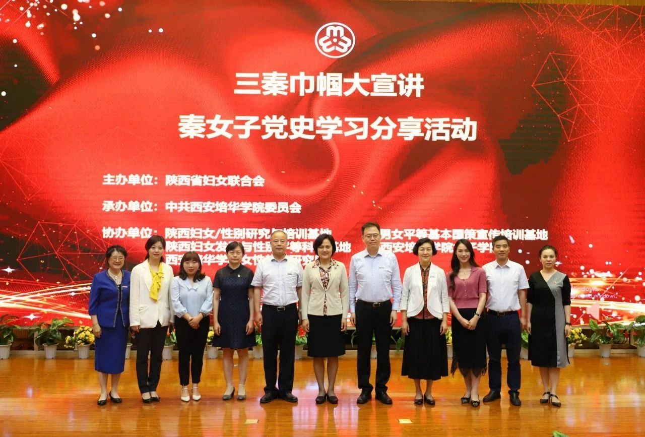 2021年6月18日,由陕西省妇女联合会主办、中共西安培华学院委员会承办的三秦巾帼大宣讲——秦女子党史学习分享活动在西安培华学院维之图书馆报告厅举办。省妇联党组书记、主席龚晓燕,省妇联党组成员、副主席温琳,省妇联宣传部部长赵勇,省妇联宣传部副部长安婧,西安培华学院理事长姜波,西安培华学院党委书记罗新远,西安培华学院学术委员会主席、副校长刘越莲,西安培华学院国际交流中心主任、女子学院常务副院长王鹏,西安培华学院女子学院副院长班理及500余名师生代表参加。活动由西安培华学院学术委员会主席、副校长刘越莲主持。