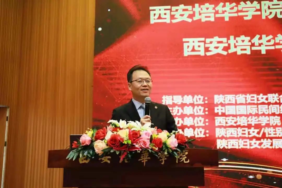 西安培华学院理事长姜波博士在大会上讲话。他指出,培华是一所历史悠久、具有女性教育传统和基因的民办高校,学校历经了93年风雨历程,并于1938年4月成立第一个中共党支部,为开展女性教育和助力中国女性教育发展做出了积极贡献。学校长期致力于女性教育,从女性教育研究到社会公益服务,从女大学生创新创业、就业指导、素质提升等一系列工作入手,提升女性技能,维护女性权益,提升女性地位,打造了女性教育品牌。