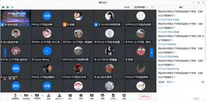 与此同时,西安培华学院学术委员会主席、副校长刘越莲,西安培华学院女子学院副院长、国际交流中心主任王鹏,女子学院全体教师,女子学院2019级全体学生通过腾讯会议线上直播,一同参与到这次活动,一起聆听、学习。