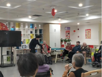志愿者们给养老院的爷爷奶奶们齐唱了《学习雷锋好榜样》、《没有共产党就没有新中国》两首红歌,爷爷奶奶们精神矍铄,纷纷跟唱并自发拍手打节拍,欢乐的气息瞬间弥漫而开。大学生志愿者们清亮的嗓音在养老院内回荡,爷爷奶奶们也渐渐被歌声中的热情和活力所渲染,从最初陌生和疏离中走出,主动展示才艺,向志愿者和其他老人们分享自己喜欢的歌曲,有《花儿为什么这样红》、《万爱千恩》等,让志愿者们深深体悟了“莫道桑榆晚,为霞尚满天”的真正含义。志愿者们还表演了爷爷奶奶们所熟识的一小段广场舞,活动现场热闹非凡。