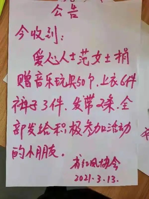 因工作原因,爱心捐助人范范老师不能莅临现场参与捐赠,她委托红凤工程志愿者将精心准备的寄语送给孩子们。