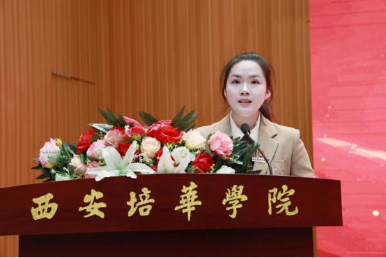 西安培华学院会计与金融学院的黄菁代表我校学生,和大家分享了她在大学三年中的成长与探索故事,得益于学校开设的相关活动和课程,本人在学校、社会实践等方面都已取得卓越的成就。面对爱情与婚姻,她提到,要以一颗平常心去面对爱情和婚姻的挑战与机遇;要以一颗真诚心去对待自己和他人的每一份感情;要以一颗进取心去追求个人成长和幸福。