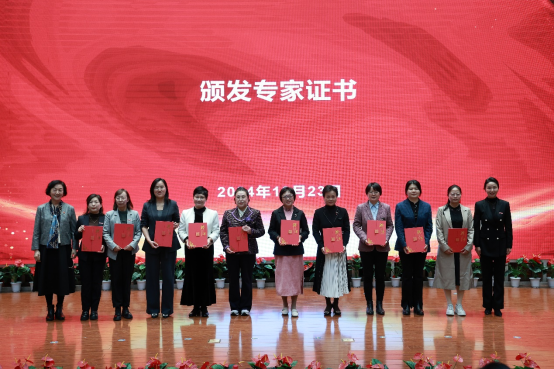 西安培华学院学术委员会主席、副校长刘越莲及党委副书记、副校长、妇联主席姚文静为基地聘请的两位顾问和十位专家颁发聘书。