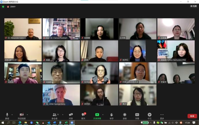 德国弗里德里希·艾伯特基金会(北京办事处)中国区首席代表康怀德博士参会并致辞。在为期两天的会议上,与会专家从《消歧公约》的履行情况入手,就中德两国在新冠疫情开始至今,各领域消除妇女歧视行动、高校教学推进情况做深入研讨。同时,分析新冠疫情暴发以来的妇女作用与贡献、妇女发展面临的机遇与挑战,并对后疫情时代妇女发展目标策略进行积极探索与展望。