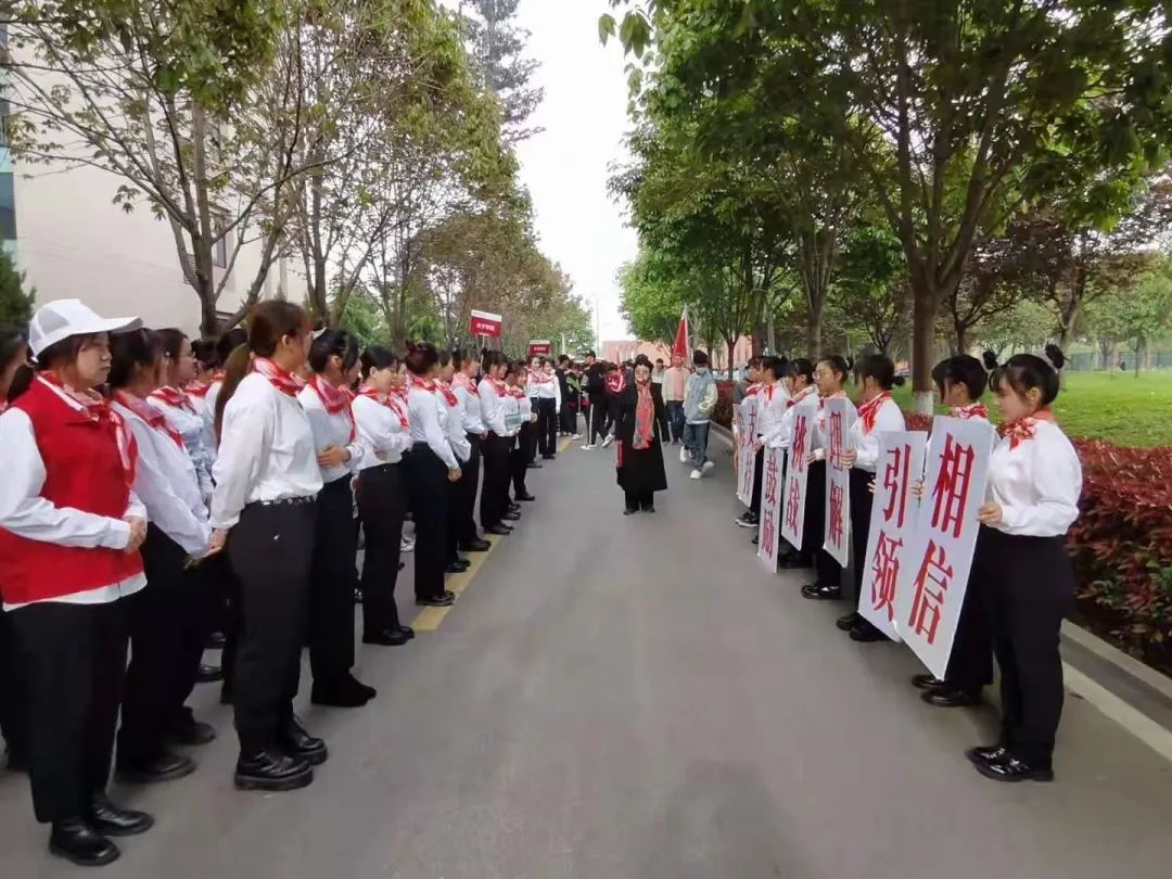 在开幕式开始前,女子学院的同学们在候场区严阵以待。西安培华学院女子学院副院长班理女士为各位走方阵同学做了动员,希望各位同学走出女子学院的精神气,展现独属于女子学院的特色和风貌。