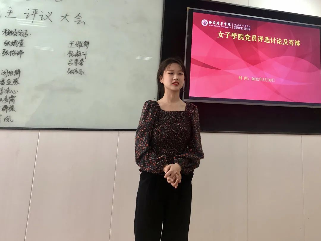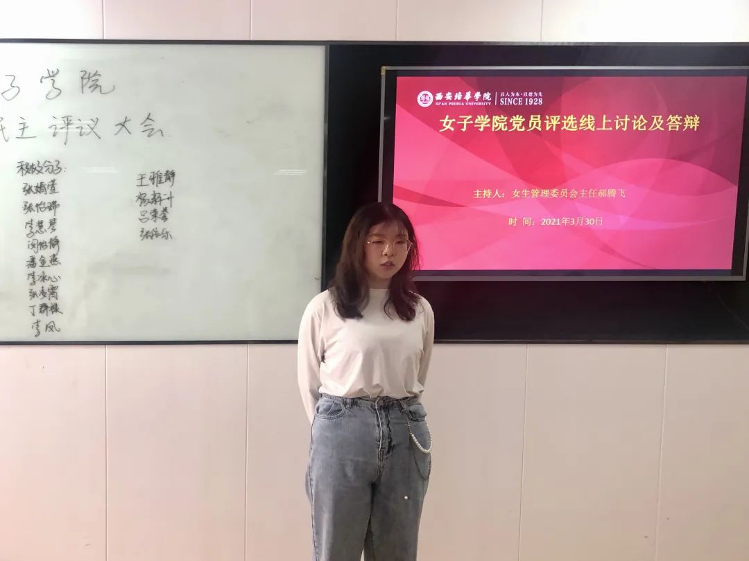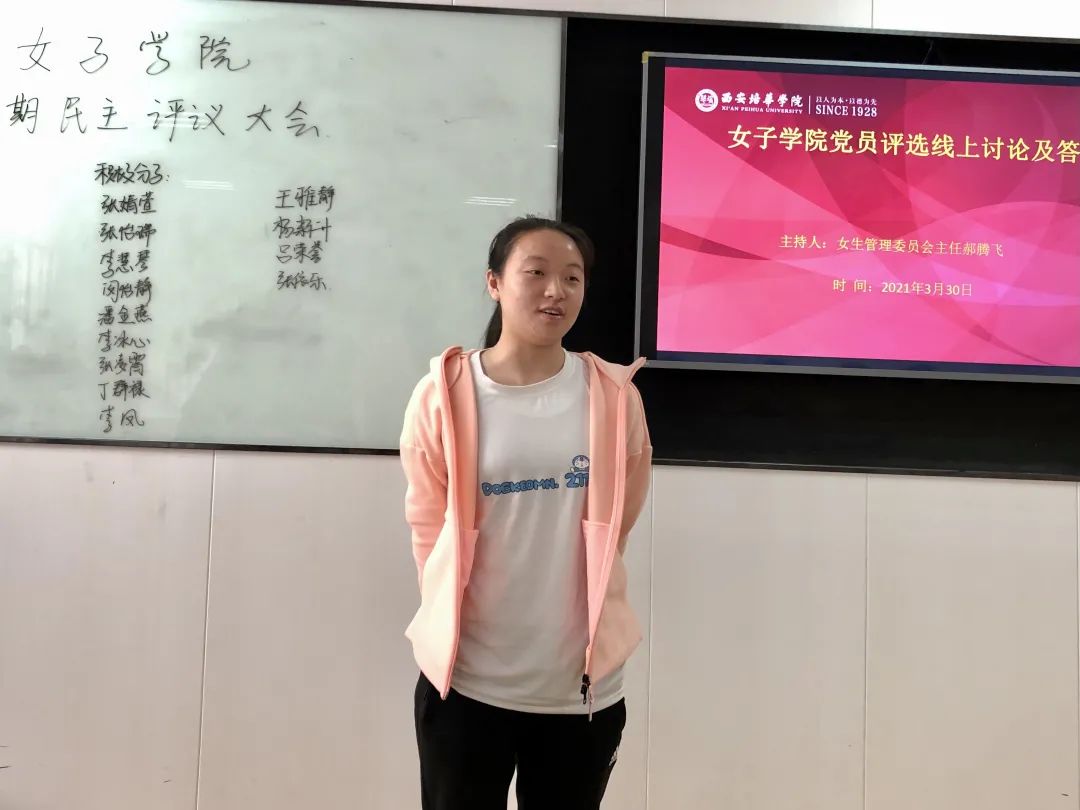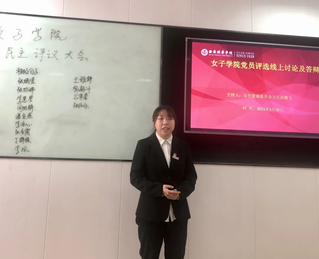 2021年3月30日星期二中午12点,西安培华学院女子学院在1302教室开展了“女子学院党员评选线下讨论及答辩”。此次共有20名学生参与答辩。