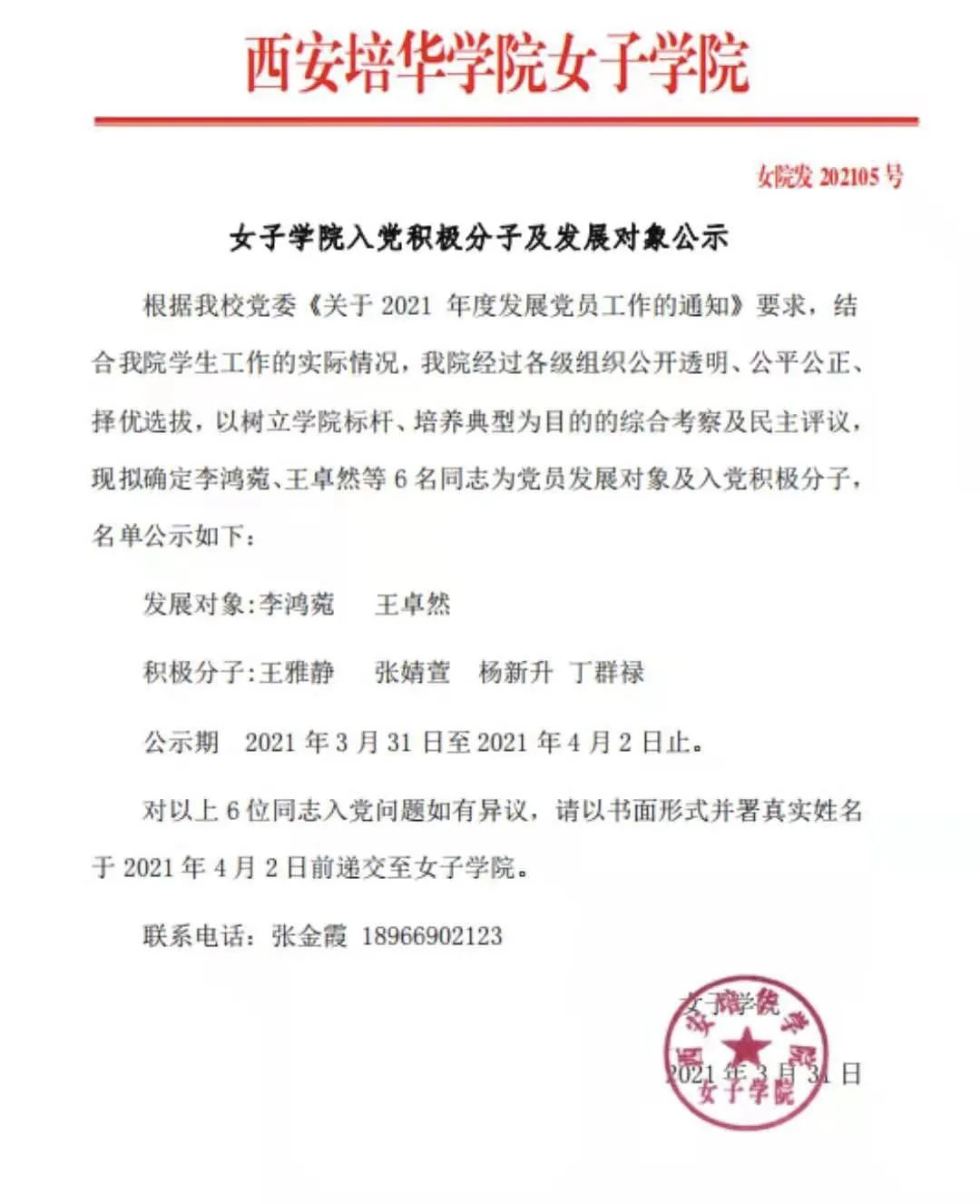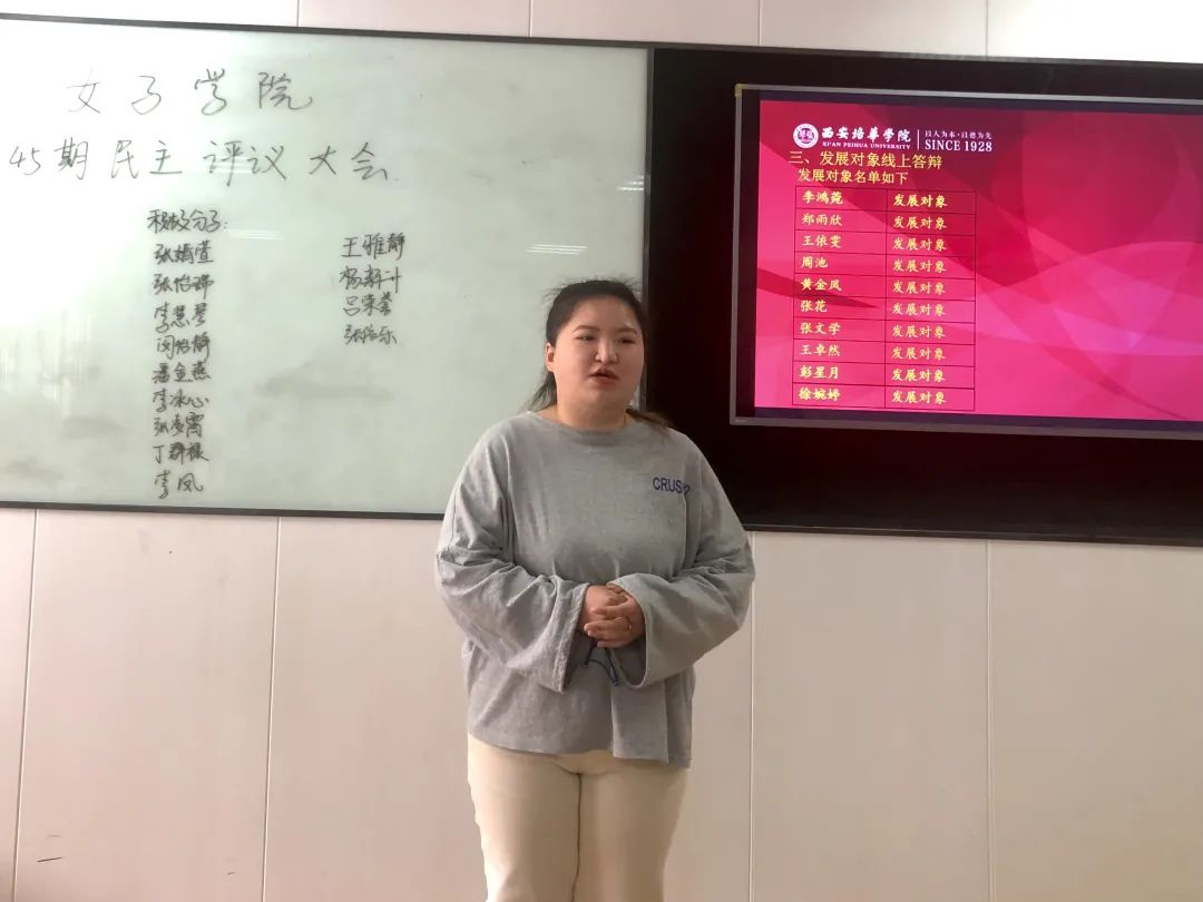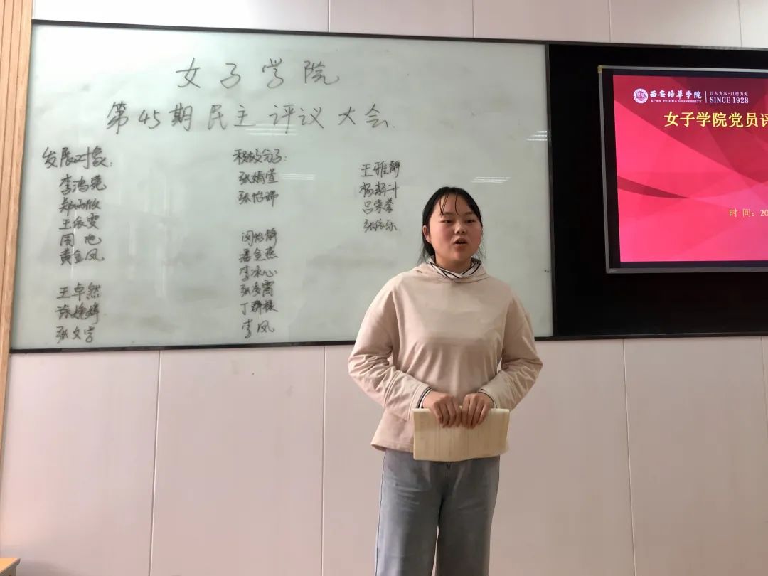 2021年3月30日星期二中午12点,西安培华学院女子学院在1302教室开展了“女子学院党员评选线下讨论及答辩”。此次共有20名学生参与答辩。