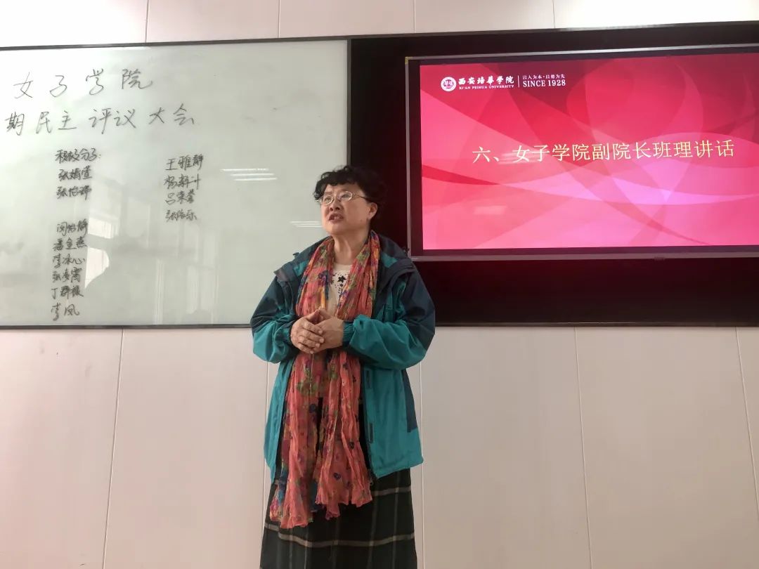 答辩最后,由西安培华学院女子学院班理副院长进行了总结,她分享了自己与党组织的成长经历,希望积极入党的同学们能够不断提升自己,心往一处想,彰显出女子学院学生入党积极分子不同凡响的精神风貌,在未来的学习工作中能不断展现出自己的风采。