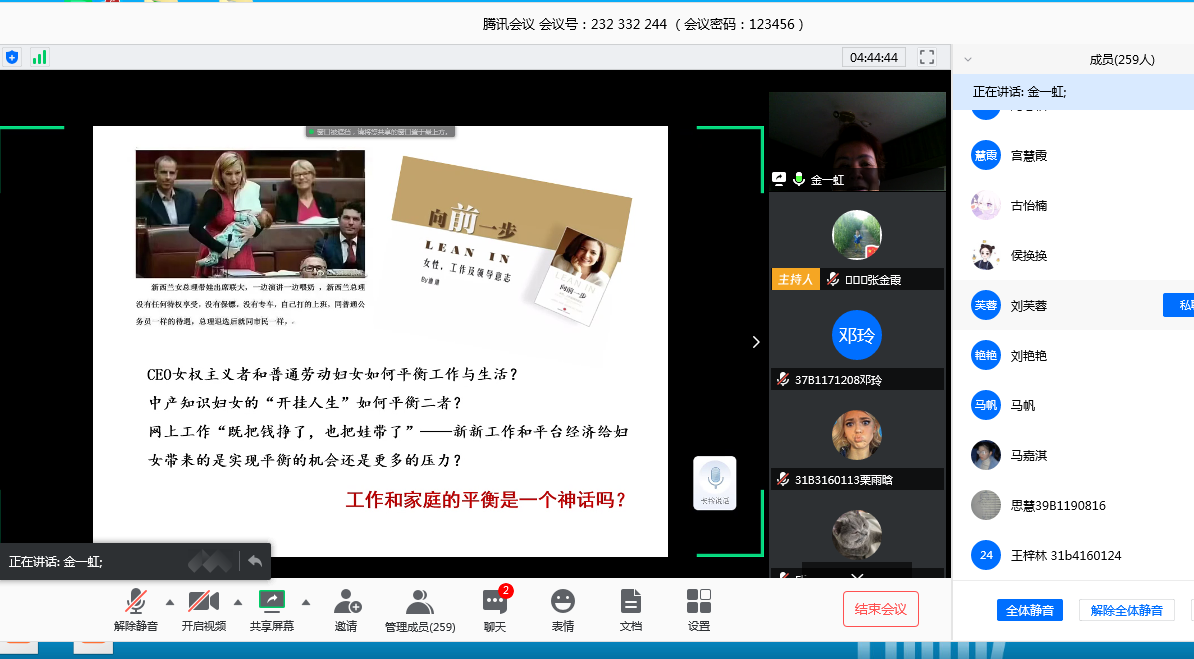 讲座中,金教授回应了:何为女性领导力?谁需要提升女性领导能力?以及为什么女性更需要领导力建设三个问题展开论述和分享。
