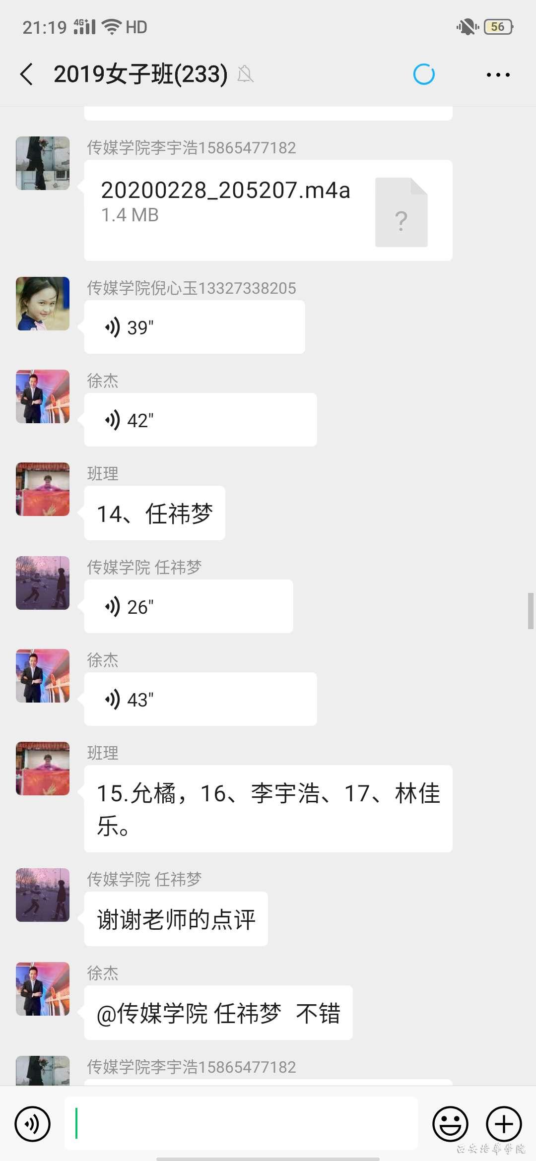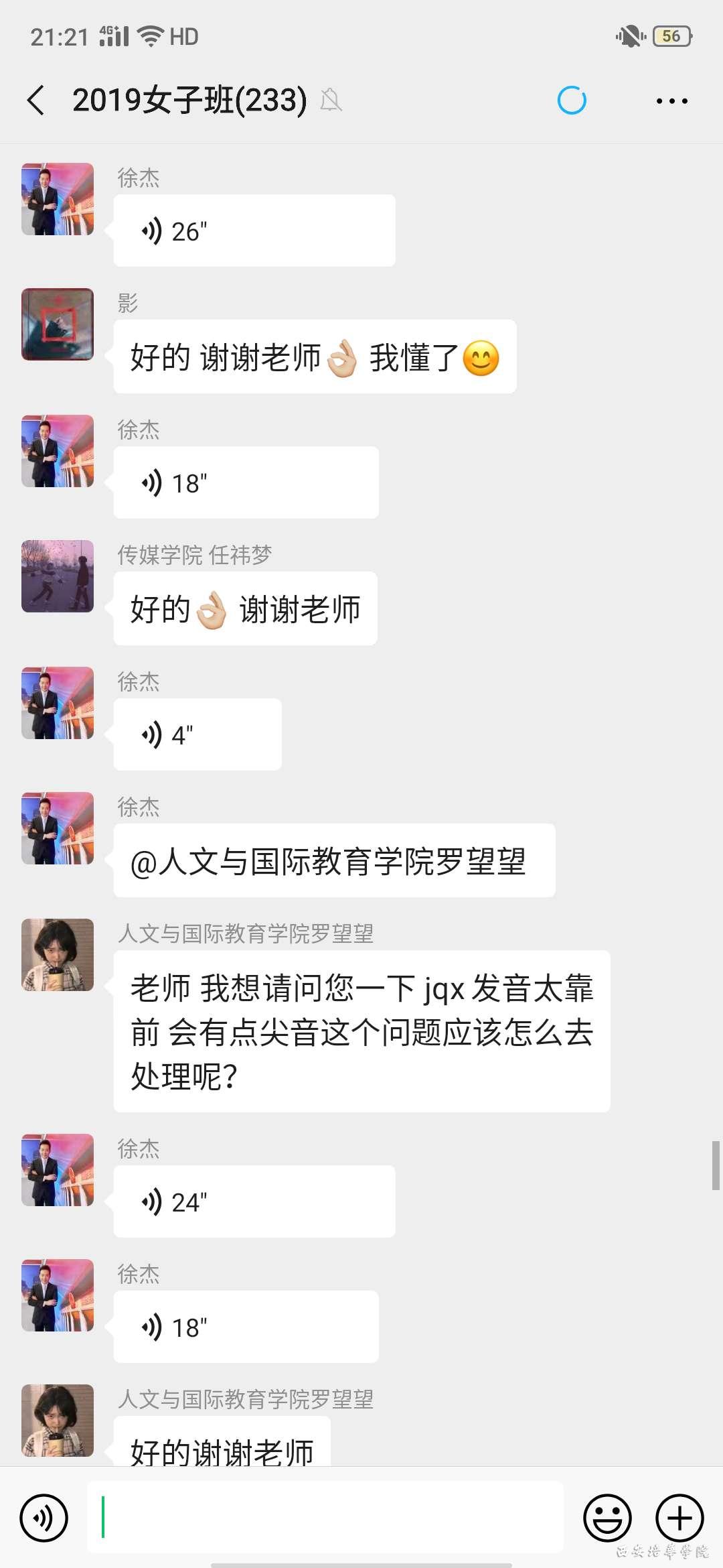 有播音与主持专业的同学向徐杰老师请教:“如何在上台演讲时,不会那么紧张。”徐杰老师向大家公布了自己的小诀窍:上台的时候呢,手里攥一个硬币或者纸巾,它会有很神奇的作用能让你保持镇定。当然还是要通过多上台锻炼,多成功几次,自身的信心也会建立起来。对朗诵的稿件要反复的揣摩和领悟作者表达的感情,并对它倾注自己的感情,才能在上台演讲时发挥出最好的水平。在回答完同学们的问题后,徐杰老师为同学们带来了近期的朗诵作品——以声抗“疫”《长安》,使同学们大饱耳福。徐杰老师勉励喜爱朗诵的同学们要坚持每天早上朗诵一首古诗词,不断揣摩古诗词中蕴涵的情感。