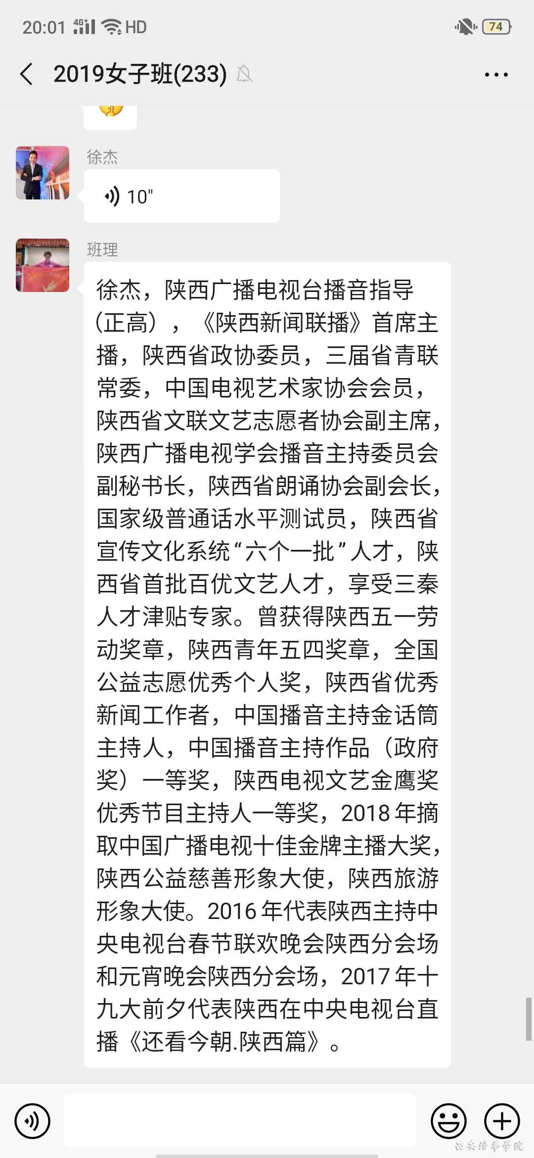与此同时,西安培华学院女子学院积极响应国家“停课不停学”的号召。于2月28日晚上8点,在女子学院常务副院长班理老师的主持下,咱们女子学院的同学们也与我省著名播音主持艺术家、《陕西新闻联播》首席播音员徐杰老师进行了一场别开生面的线上朗诵培训课。