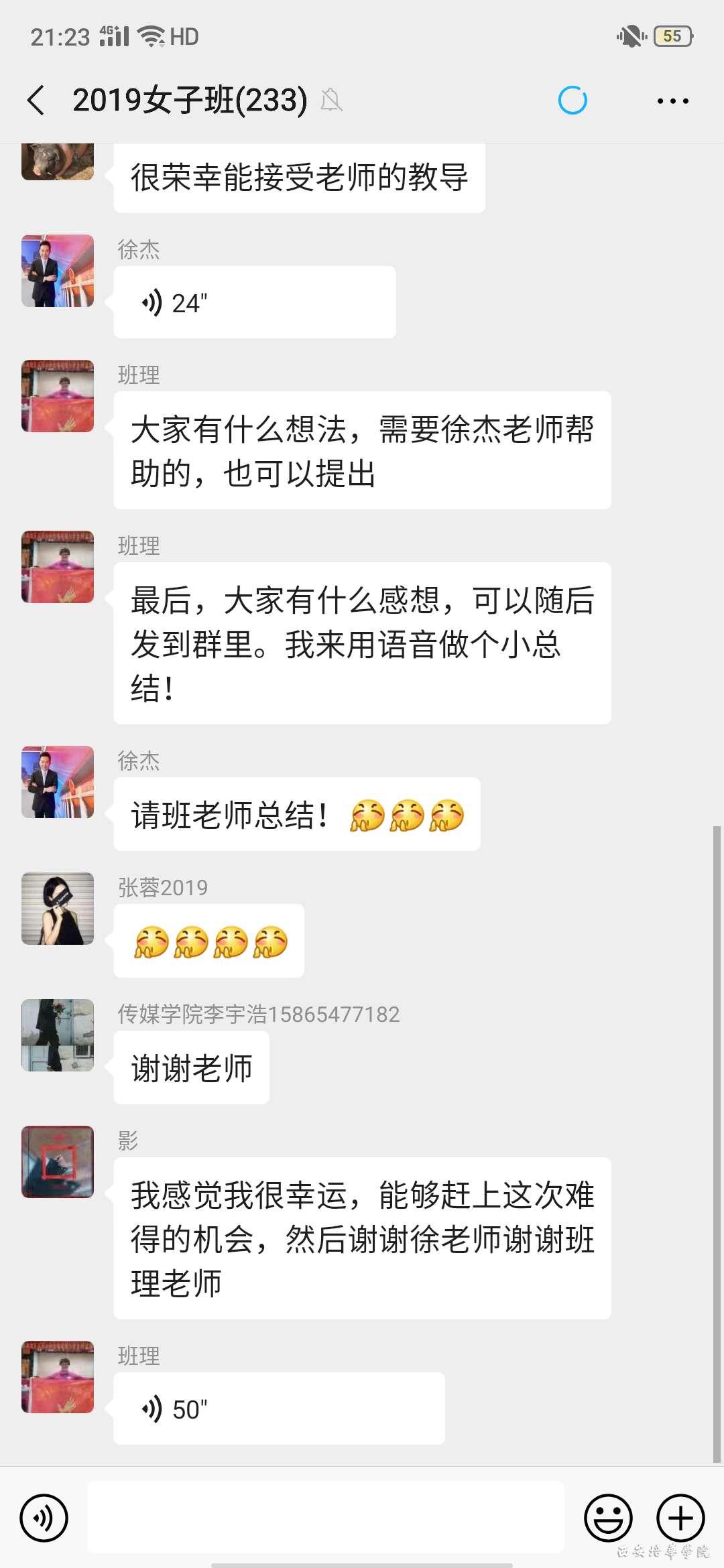 最后班理老师向同学们介绍到,徐杰老师不仅是优秀的朗诵主持艺术家,同时也非常关心我们陕西的志愿者服务事业,自己更是积极地参与到了志愿者服务当中去。这次朗诵培训课,就是为我们的志愿者提供了枪支和弹药,通过徐杰老师的朗诵培训来加强我们女子学院参加志愿服务的能力和水平!在同学们的喝彩声中,历时一个半小时的朗诵培训课结束了。许多同学对徐杰老师精彩的点评仍然念念不忘,纷纷留言:欢迎徐杰老师下一次再来。