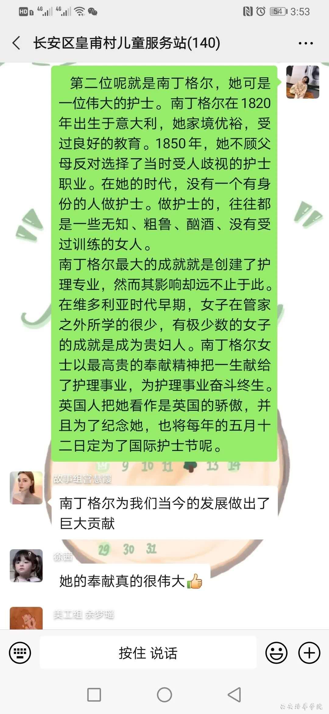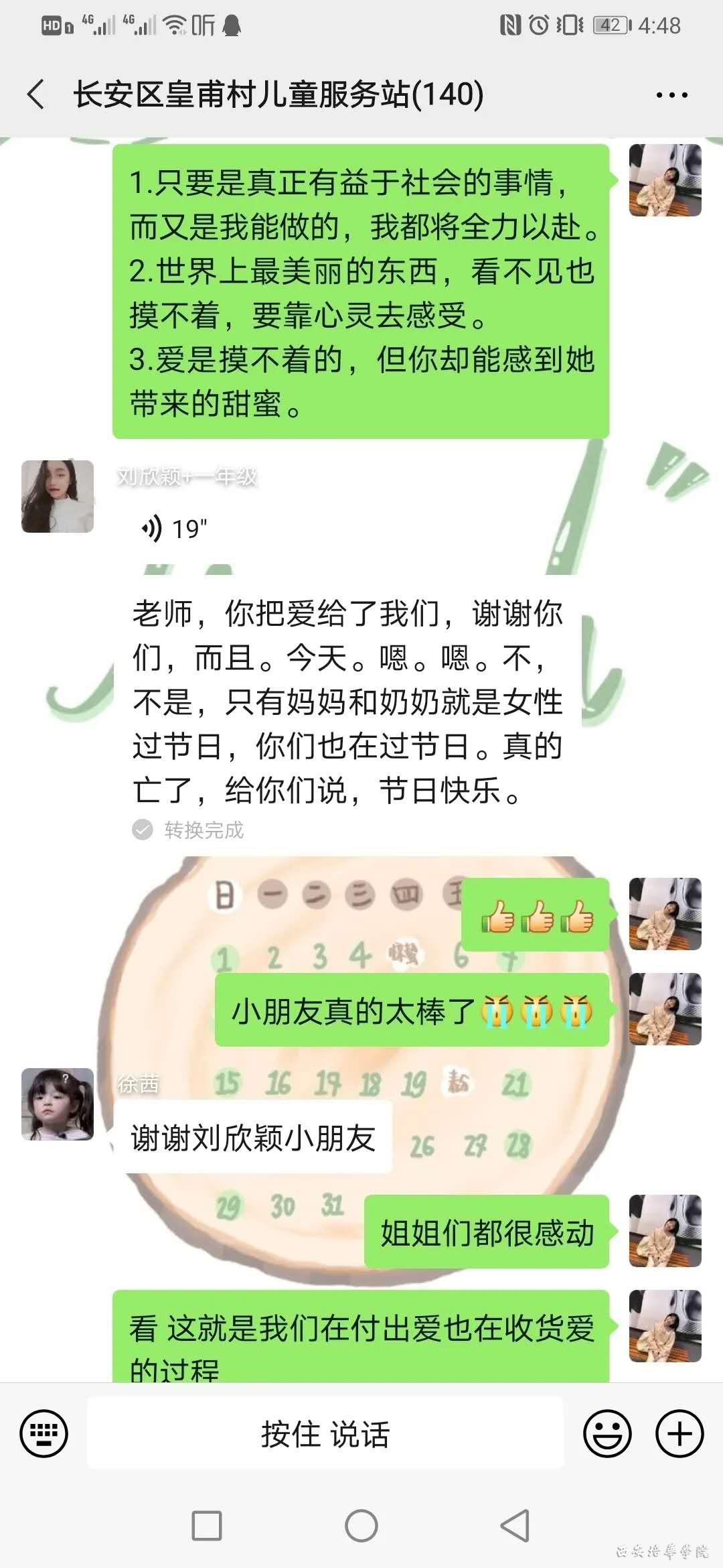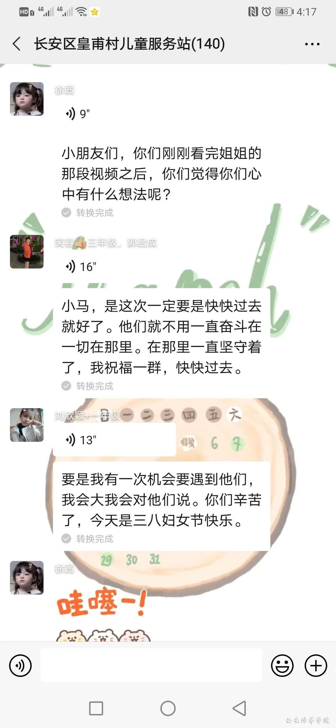 首先罗望望姐姐介绍了海伦凯勒的生平资料,让大家能够有所了解。故事大致讲的是海伦在一岁半的时候生了一场大病,从此失去了听力,视力,还有说话的能力,这对她的打击非常大。但是在她七岁那年,她的家庭教师莎莉文老师的到来,改变了海伦的一生。她用耐心和爱去感化海伦,她让海伦用心去感受自然。海伦也特别努力的学习,最后在她们共同的努力下,海伦终于学会了说话,并且还以优异的成绩从名校毕业,并且在她长大后建立了慈善基金会,去到美国各地帮助那些有需要的人。莎莉文老师把爱带给了海伦,海伦把爱洒满了大地。小朋友们积极发,从这个故事中小朋友谈自己学到了要善良,要乐于助人,无论遇到什么难题都绝不放弃,要勇于战胜困难,一直学习进步。并且要把志愿者姐姐们的爱带给身边的人。同时他们还为群里的志愿者们送来了三八妇女节的祝福,特别的温暖与贴心。