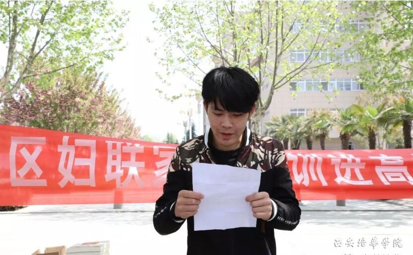 4月3日中午,长安区妇联、西安培华学院人文学院、女子学院以及校三秦巾帼志愿服务团联合举办的“长安区妇联法制、家风家训进高校”宣传活动在我校图书馆门前举行。