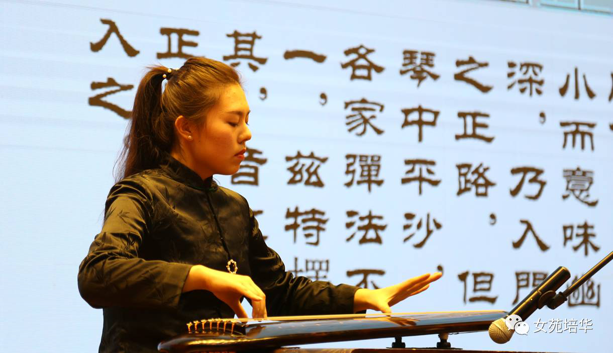 首先李教授从古琴的外形入手,为大家介绍了古琴的类别,它分为半箱式,伏羲式,神农氏,凤势式,连珠式,师旷式,灵机式等。紧接着她为大家讲述了古琴的历史,由此引出古琴名作,并让自己优秀的学员为大家带来精彩演绎。