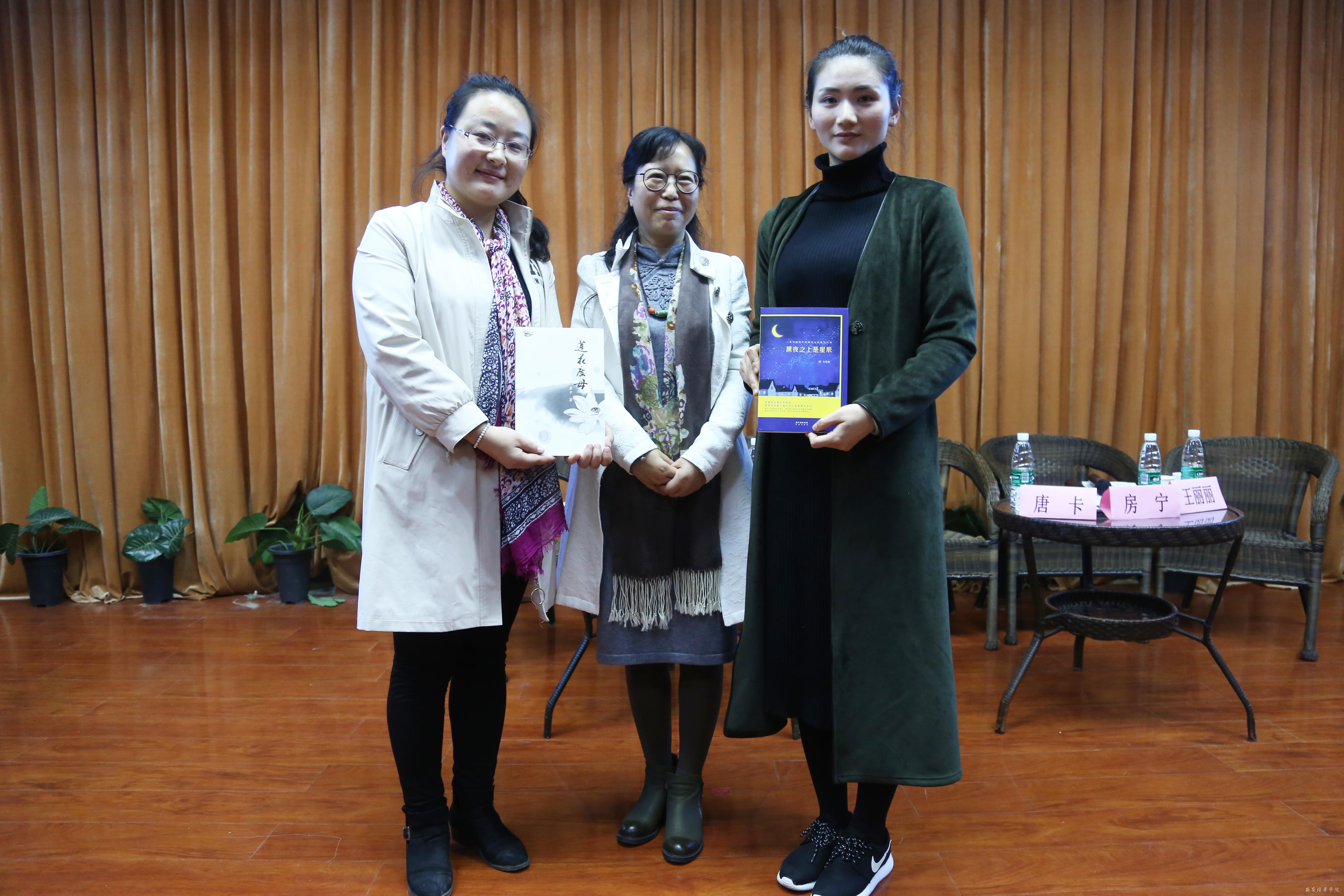 周燕芬老师与张艳茜老师、唐卡老师向女子学院赠送他们所著的书籍