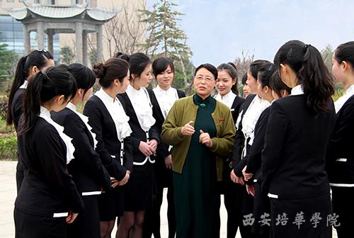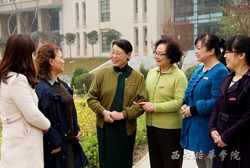 ③叶广芩院长与女子学院的学生在一起,了解学生们的日常学习生活情况,并告诉她们要注重礼仪举止,要有乐观向上的生活态度。