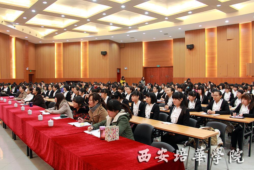 12月4日晚,我校2012—2013年度第一学期女性文化素质教育系列大讲堂第四场讲座——“你的礼仪价值无限”在明德楼四楼学术报告厅开讲。本次讲座由IPA国际注册高级礼仪培训师、陕西省礼仪协会会员、金牌礼仪讲师张小妮主讲,女子学院及医学院部分学生聆听了讲座。