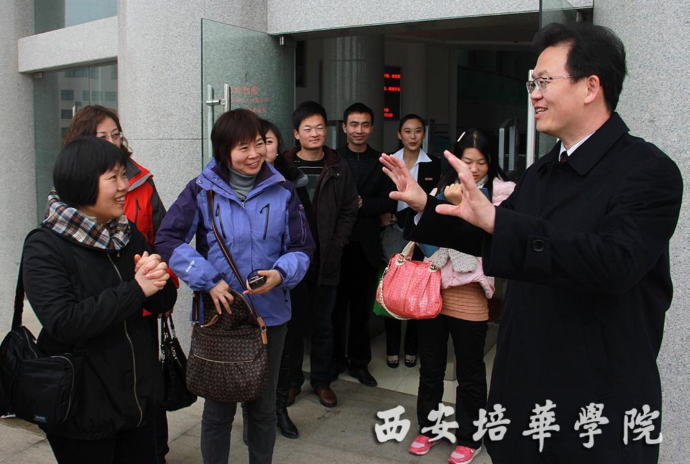 11月7日,江苏省妇女干部学校校长黎桦,副校长宗云,学生科科长严萍及江苏省妇女干部学校驻西安办事处领导等一行五人来我校参观考察。我校理事长姜波,常务副院长王拴才,女子学院副院长金沙曼、郝西燕等热情接待了来宾一行。